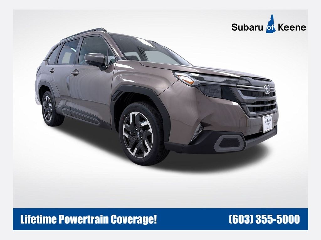Subaru of Keene is proud to present you with another True Market Priced Vehicle. This 2025 Subaru Forester Limited is loaded with the following Factory Options: harman/kardon Audio & Navigation & RAB (Radio: Subaru 11.6" Multimedia Navigation System and Reverse Automatic Braking (RAB) System), 4-Wheel Disc Brakes, 6 Speakers, ABS brakes, Air Conditioning, Alloy wheels, AM/FM radio: SiriusXM with 360L, Anti-whiplash front head restraints, Auto High-beam Headlights, Automatic temperature control, Brake assist, Bumpers: body-color, Driver door bin, Driver vanity mirror, Dual front impact airbags, Dual front side impact airbags, Electronic Stability Control, Emergency communication system: MySubaru Safety (3-year free trial), Exterior Parking Camera Rear, Four wheel independent suspension, Front anti-roll bar, Front Bucket Seats, Front Center Armrest, Front dual zone A/C, Front fog lights, Front reading lights, Fully automatic headlights, Heated door mirrors, Heated Front Bucket Seats, Heated front seats, Heated steering wheel, Illuminated entry, Knee airbag, Leather steering wheel, Low tire pressure warning, Occupant sensing airbag, Outside temperature display, Overhead airbag, Overhead console, Panic alarm, Passenger door bin, Passenger vanity mirror, Perforated Leather-Trimmed Upholstery, Power door mirrors, Power driver seat, Power Liftgate, Power moonroof: Panoramic, Power passenger seat, Power steering, Power windows, Radio data system, Radio: Subaru 11.6" Multimedia Plus System, Rear anti-roll bar, Rear seat center armrest, Rear window defroster, Rear window wiper, Remote keyless entry, Security system, Speed control, Speed-sensing steering, Split folding rear seat, Spoiler, Steering wheel mounted audio controls, Tachometer, Telescoping steering wheel, Tilt steering wheel, Traction control, Trip computer, Turn signal indicator mirrors, Variably intermittent wipers, and Wheels: 18" x 7.0 J Dark Metallic Aluminum-Alloy!!